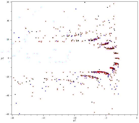 - Cheb-Terrab, E.S.; de Oliveira, H.P. Poincaré sections of Hamiltonian systems. Comput. Phys. Commun. 1996, 95, 171–189. [Google Scholar] [CrossRef]