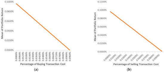 where is the transaction cost percentage of buying stocks. Then, the transaction costs for selling stocks from the portfolio are a percentage of the total selling transactions. The percentage of each stock-selling transaction cost is assumed to be the same. Mathematically, this is expressed as follows: