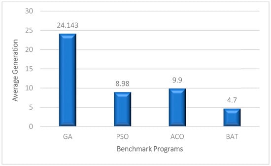 As previously indicated, another factor utilized to compare the proposed technique to other algorithms in the creation of test data was convergence speed. This criterion shows the typical rate of delivering effective test results. An algorithm’s rate of convergence is determined by the average number of iterations needed to generate test data (AG). The algorithm’s rate of convergence is shown by the average number of iterations.