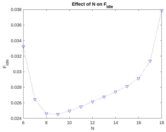 Figure 2. Effect of the level N on the fraction of time for which the servers are idle.