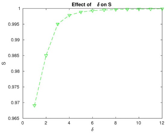 Figure 7. Effect of the repair rate δ on the reliability of the system.