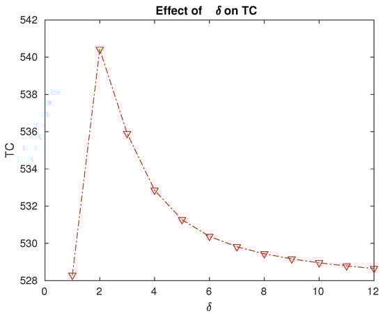 Figure 10. Effect of the repair rate δ on the expected total cost.