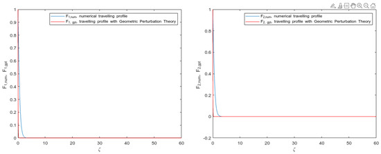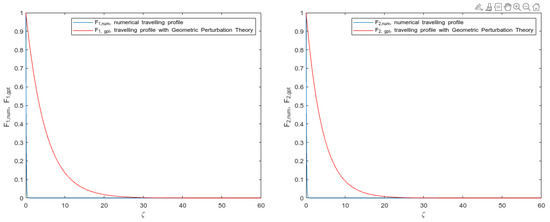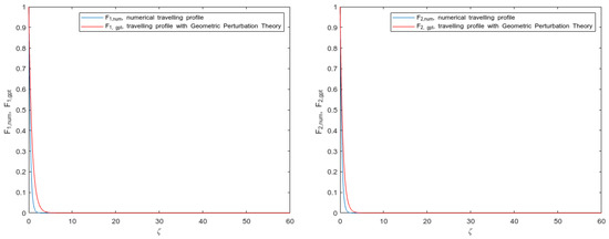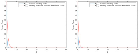As it can be inferred, the traveling wave was assumed as common for both solutions. The forms of the solutions were provided in accordance with different values in the traveling wave speed. These presented results led us to state on the validity of the hypothesis conducted in the construction of traveling wave profiles that are based on the geometric perturbation theory.