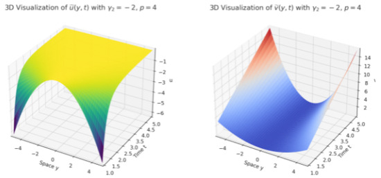 These expressions indicates the relationships between the parameters , , , , and p, where and were expressed in terms of and p. This symbolic resolution helped to elucidate the interdependencies among these parameters within the framework of the self-similar solutions.