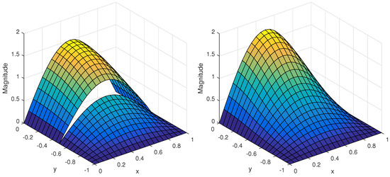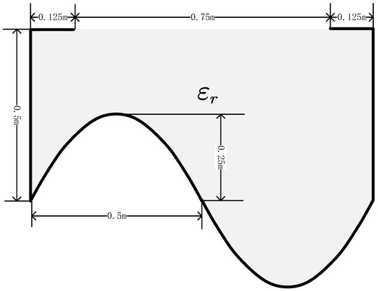 We further consider an asymmetric groove that is 1 m wide and 0.5 m deep, as shown in Figure 14, where the function of the lower edge of the groove is .