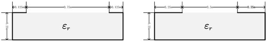We next consider partly covered rectangular grooves with different kinds of apertures in Figure 7, which both are 1 m wide and 0.25 m deep. In the left picture, the aperture is covered by 0.125 m at both ends, while the aperture is covered by 0.25 m in the right picture.
