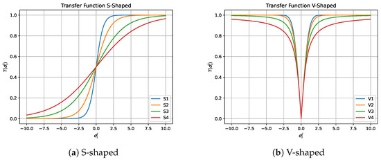 In 1997, Kennedy et al. [89] introduced transfer functions in the field of optimization. New transfer functions have been introduced over the years [22], and we can observe that there are different types of transfer functions, among which S-Shaped transfer functions [76,90] and V-Shaped transfer functions [91] stand out.