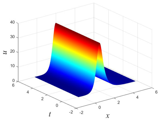 By substituting these results into Equation (69), we obtain the following soliton solution: