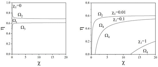 We observe that the coefficient matrix in (30) with is singular, while the right-hand side is nonzero: then this leads to a contradiction. Consequently, the transversality condition (28) is verified. Then, according to the Crandall–Rabinowitz bifurcation theory [], there exist nonconstant positive solutions that can be parameterized as