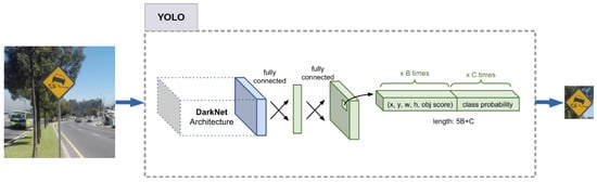 YOLO is a state-of-the-art technology developed for object detection based on DL, with emphasis on real-time and high-accuracy applications []. In YOLO, object detection is treated as a regression problem where candidate images and their categories and confidence indices are directly generated by regression. The detection result is finally determined by setting a threshold of the confidence rate and the non-maximum suppression technique [].