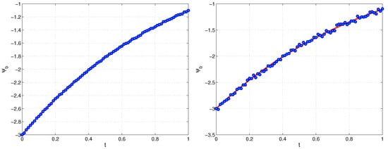 Let denote . In order to solve the problems (31)–(33), we initiate iteration process, replacing by the solution at old iteration and is the solution at new iteration , . Suppose that the points of measurements are grid nodes. Thus, for the numerical recovering of the solution and left boundary condition, the computations are performed by the following steps