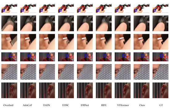 - Jin, X.; Wu, L.; Chen, J.; Chen, Y.; Koo, J.; Hahm, C.H. A Unified Pyramid Recurrent Network for Video Frame Interpolation. In Proceedings of the IEEE Conference on Computer Vision and Pattern Recognition, Vancouver, BC, Canada, 17–24 June 2023. [Google Scholar]