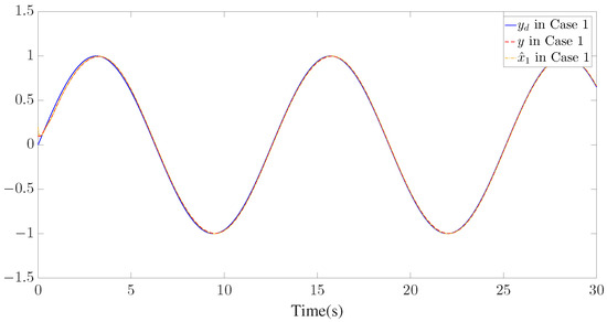- In most of previously reported results with respect to adaptive control for FONSs [8,9,16,17,18], the system states must be available a priori, which may not be easily satisfied in practice. In contrast to the aforementioned results, only the system output—rather than all state information—is required for the controller designed in this work by constructing a high-gain fuzzy state observer. Time-varying delays and input quantization are simultaneously considered in the investigated system. Therefore, the system model considered in this paper is more general than previous proposals.