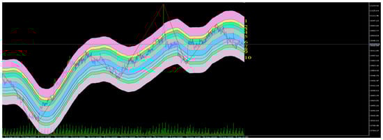 Moving forward, the quantum mechanical spherical harmonic function is utilized for precise computations, as denoted by spherical coordinate Equation (15). This operation is selected due to the quantum model’s analogy of financial movements to those within a spatial field. Given the tri-dimensional nature of physical fields, spherical coordinates are thus employed. In this analogy, monetary flows are likened to movements within a three-dimensional price field. Financial market data are inherently multi-dimensional, and their representation should be a three-dimensional composition of these multiple dimensions. Quantum mechanics introduces three spherical coordinate operators—, and ∇2—along with an angular momentum L. Within spherical coordinates (r,θ,ψ), these operators are defined as follows.