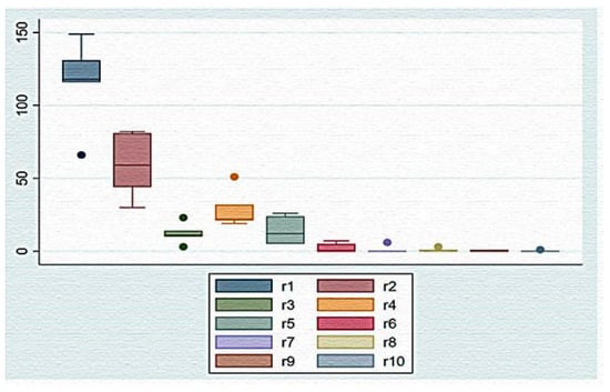 To simplify the calculation, let Equation (22) be equal to 1 as a whole. Then, take the different l values corresponding to different transition distance coefficients as , and take the value of l as an integer between 1–10 to solve for ten different transition distance parameters (see Table 1). Since the capital transition is in two directions on the straight line, the value is equivalent to the single-direction transition dimension.