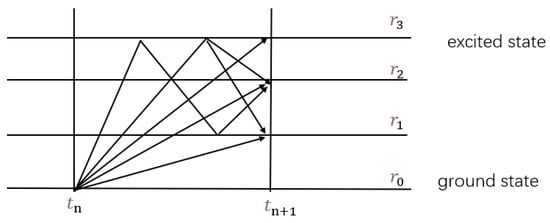 Equations (17) and (18) are operators in quantum mechanics, where denotes the angle in Figure 3 and denotes the distance measure to the next node. ħ is defined as the measure representing the amount of funds. In this case, ħ represents the fund amount measure. Equation (19) delineates the angular momentum corresponding to the particle’s microstate. Within this equation, the integer 1 is always positive, reflecting the diversity in the fund’s application categories. This integer serves as an analogy for the various utilization characteristics of the funds. Consequently, the comprehensive energy operator in the final Equation (15) can be abbreviated as follows: