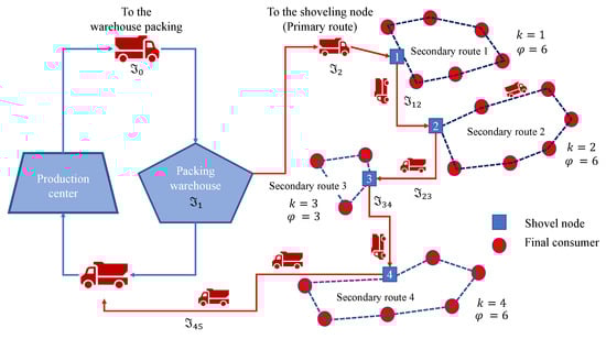 A supply chain is defined as the set of activities required for the delivery of goods or services to the consumer [5,6]. In a manufacturing line, the activities related to the supply chain define the processes necessary to convert raw materials or components into finished products or services. An essential element in the supply chain is logistics. This activity consists of the process of planning and executing transport, the efficient storage of goods and the correct distribution of the products between customers and suppliers [7,8]. In this case, transport is the central problem for the design of the chain; this is where routes, loads, transport typology, operators, travel times, transport costs and time windows have to be defined. The importance of each of these issues is as described below: