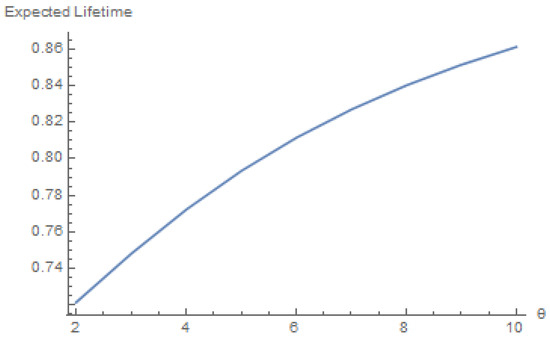 Based on Figure 5, Figure 6, Figure 7 and Figure 8, it is easily observed that the expected lifetime of the resulting reliability system increases in a linear way in terms of the parameter under the assumption that remains unchanged.