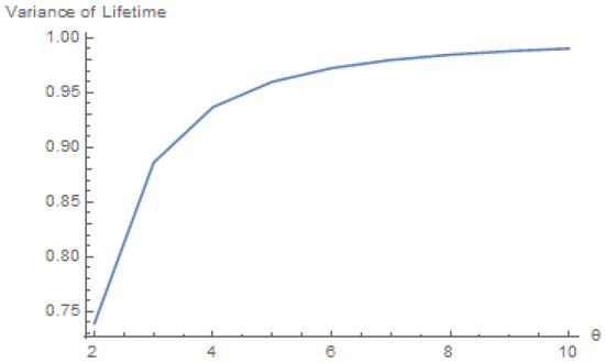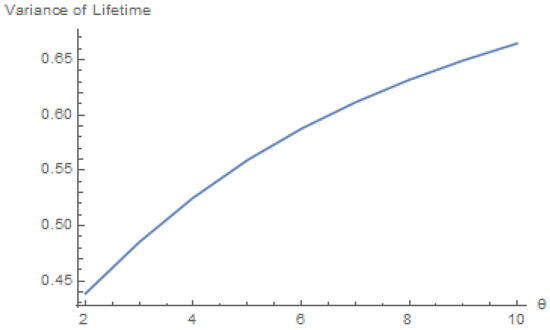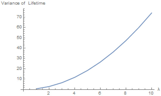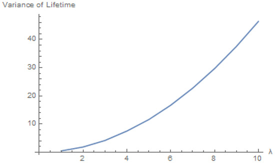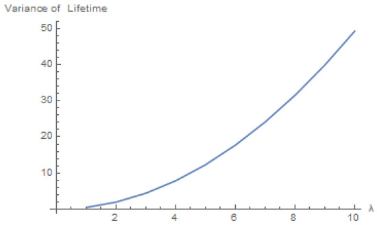 (ii) The variance of the system’s lifetime shall be determined by applying the well-known identity (16). Τhe 2nd moment of can be expressed as