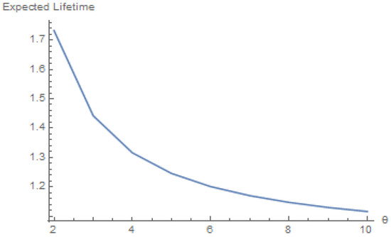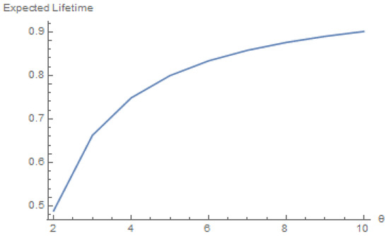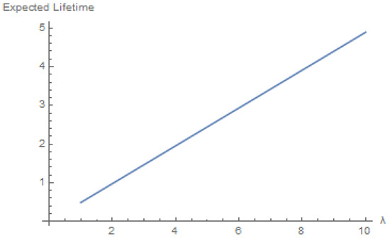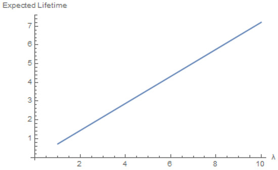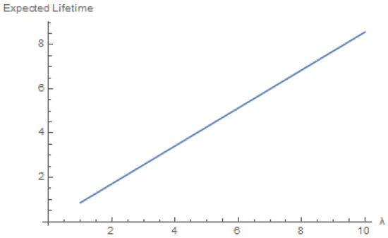 Based on Figure 13, Figure 14, Figure 15 and Figure 16, it is deduced that the expected lifetime of the resulting reliability system increases in a linear way in terms of under the assumption that remains unchanged.