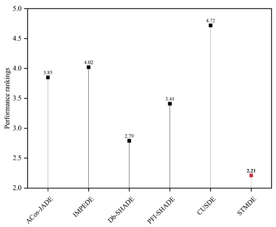 Performance rankings of STMDE and compared DE variants.