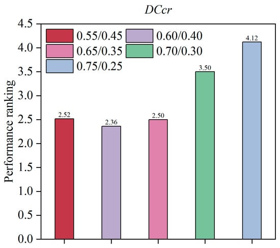 Performance rankings for different settings of DCcr.