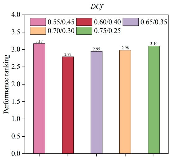 Performance rankings for different settings of DCf.