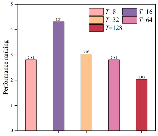 Performance rankings for different settings of T.