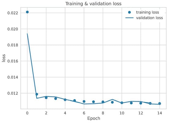 The best-performing ANN architecture is detailed in Table 3, where the encoding layers (L. 1, 2, and 3) and decoding layers (L. 4, 5 and 6) decrease and increase in the number of neurones, respectively. The training parameters are detailed in Table 4, while the plots of the loss function results for the training and validation data are seen in Figure 4. Finally, the encoder model is configured to receive input data and this returns the values of the bottleneck layer.