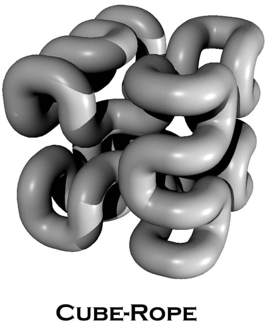 In addition to the above error and efficiency comparisons, here, we compare the number of design variables among the three different methods. With the XPBD, the cube-rope model at each of the 11 frames is defined by 19,968 vertices (design variables). In total, 219,648 design variables are required to define the cube-rope model at the 11 frames . With the static B-spline curve-based linear interpolation method, 50 control points (design variables) are used to define one of the 24 curves representing the cube-rope model, which means that 1200 design variables are used to define the cube-rope model at each of the six frames 0, 2, 4, 6, 8, and 10. The cube-rope model at frames 1, 3, 5, 7, and 9 is obtained by linearly interpolating the frames 0, 2, 4, 6, 8, and 10. In total, 7200 design variables are required to define the cube-rope model at the 11 frames. With our proposed PDE-based dynamic reconstruction method, 32 unknown constants (design variables) in Equation (17) are used to define one of the 24 curves representing the cube-rope model. In total, 768 design variables are used to define the cube-rope model. Once the 768 design variables are obtained, the cube-rope model at the 11 frames is determined by setting the time variable t in Equation (17) to . In comparison with the 219,648 design variables required by the XPBD algorithm and 7200 design variables required by the static B-spline curve-based linear interpolation, the design variables required by our proposed PDE-based dynamic reconstruction method are only and required by the XPBD algorithm and the static B-spline curve-based linear interpolation.