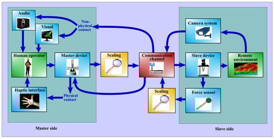 Schematic diagram of the bilateral control of a telemanipulation system.