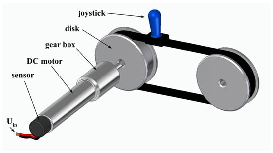 A 6 DOF telemanipulation system is given with specific devices and mechanisms on the master and slave sides (see Figure 1). On the master side, a joystick is held, can be moved, and rotated manually by the operator. The workspace is 800 mm × 800 mm × 800 mm for translational motion, and the maximum rotation is  for each axis. The operation is based on force feedback in response to manipulations in all types of motion (all degrees of freedom). The simplified structure belonging to a translational motion is shown in Figure 2.
