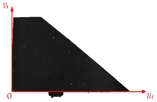 The coordinates of the physical surface of the air rudder are set with the corner points and boundaries of the rudder surface as the origin and coordinate axis of the coordinate system. Corresponding to the image level, a two-dimensional coordinate system is established with the pixel point where the corner point of the rudder surface is located as the origin, as shown in Figure 11. The horizontal and vertical axes of the coordinate system are parallel to the two sides of the image, respectively. The coordinate axis unit is a pixel called the “air rudder image coordinate system” and is described as .
