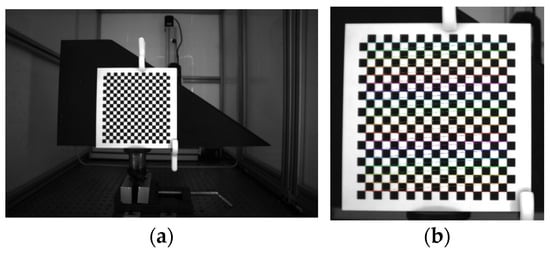 Among them, are the actual (with distortion) physical coordinates of the image, are the physical coordinates of the image under ideal conditions (without distortion), , and are the first-order and second-order radial distortion coefficients, and the vector composed of them is called the distortion vector. According to Equations (9) and (12), the pixel coordinates can be obtained. The transformation relationship of the pixel coordinates with or without the influence of distortion is as follows: