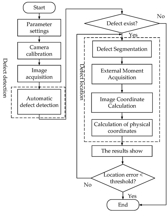 The operation flow of the rudder surface defect detection and location software is shown in Figure 17.