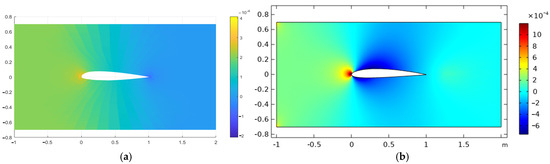 To derive the weak form of the Navier–Stokes Equations (11) and (12), which describe the laminar flow behavior over an airfoil by considering both the pressure gradient and viscous effects, the equations are multiplied by the test functions and then integrated over the domain Ω.