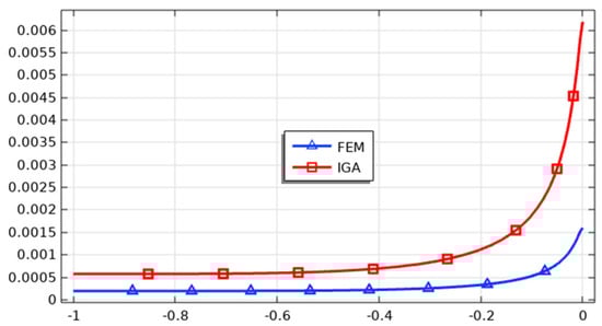 Horizontal line left-side velocity evaluation using FEM and IGA.