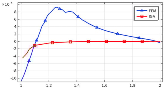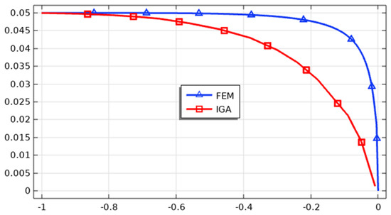 Horizontal line right-side velocity evaluation using FEM and IGA.