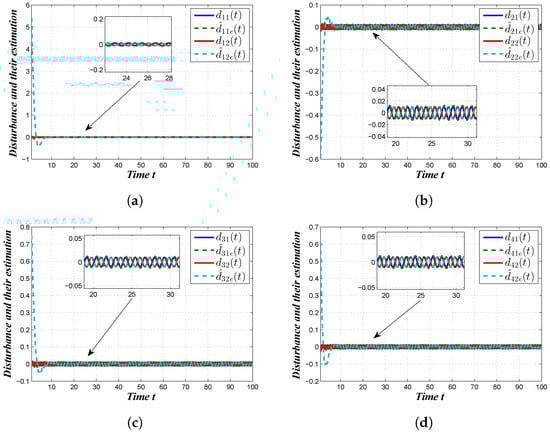 Disturbance tracking. (a) disturbance tracking performance for the first agent, (b) disturbance tracking performance for the second agent, (c) disturbance tracking performance for the third agent and (d) disturbance tracking performance for the fourth agent.
