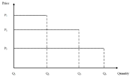 (Tsai [32]). The step function that determines the price according to the quantity (Figure 2) can be expressed as follows: