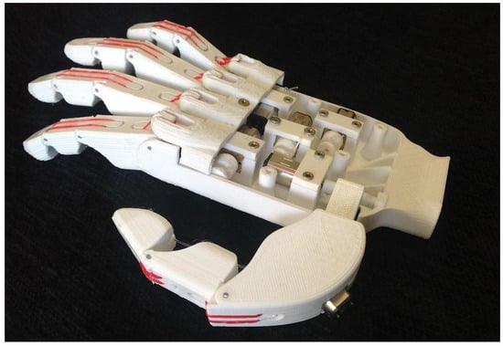 - Andrés, F.J.; Pérez-González, A.C.; Rubert, J.; Fuentes, B. Sospedra, Comparison of grasping performance of tendon and linkage transmission systems in an electric-powered low-cost hand prosthesis. ASME J. Mech. Robot. 2019, 11, 1–14. [Google Scholar] [CrossRef]