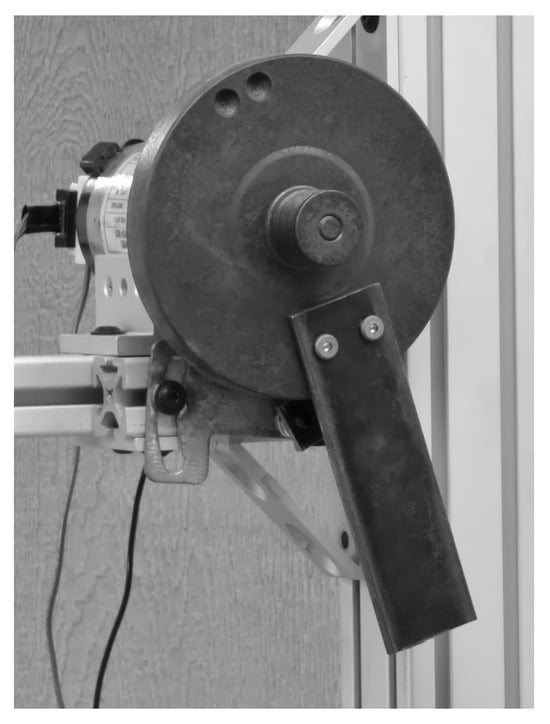 Let us consider the actuated mechanical system depicted in Figure 2. It can be assimilated to a nonlinear pendulum, actuated at its center of rotation O through a rotating motor. Following from Equation (4), its motion can be approximated through the equation