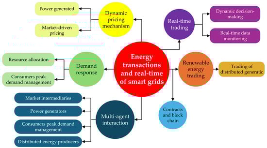 One key characteristic of smart grids is the distributed nature of energy resources. With the increasing adoption of distributed energy systems, traditional centralized dispatch methods are becoming less effective. Instead, smart grids employ distributed algorithms to manage and schedule resources more efficiently [,]. These algorithms allow the integration of diverse agents, including power producers (e.g., power plants and distributed energy systems), electricity consumers (e.g., residential, commercial, and industrial entities), network operators, and market intermediaries. This distributed architecture provides greater flexibility, enabling the system to adapt to dynamic changes in both energy production and consumption.