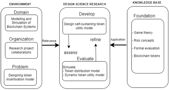 The knowledge base foundations for conducting this research includes game theory modeling, risk concepts, formal evaluations, and blockchain token systems. The game theory and blockchain token concepts are presented in Section 2.1. The developed token models in this paper are evaluated using scenarios-based formal simulations [25]. The evaluation results show the simulations of the token distribution and dynamic token utility models in Section 3.3 and Section 4.3, respectively. Risk concepts such as threats and impacts of threats are used to qualitatively analyze the design token model [26,27]. The results of the token risk assessment are shown in Section 5.1, Section 5.2 and Section 5.3.