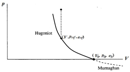 where ; and are the pressure and energy of the reference state, and the compression states are defined as points along the Hugoniot curve (as shown in Figure 1 [17]). However, for expansion states, it is hard to describe the reference state by Hugoniot curves due to the negative in the following deduction: