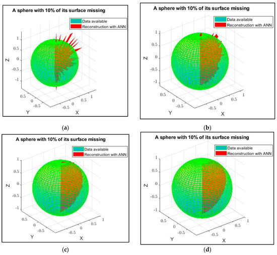 The difference between the proposed approach in this article and conventionally used methods lies in the fact that the training of the ANNs is based on the coordinates of known surface points, rather than on a set of images, as is the case with CNNs. In practice, this presents both advantages and disadvantages. In surface approximation methods that use CNNs, a large set of similar objects is required for training, after which the ANNs recognize an individual surface and reconstruct it based on their “memories” from training. However, if the trained CNNs are used to reconstruct a completely unknown object, they would identify it as the closest similar one they recognize, and the reconstruction would be based on that, potentially leading to deviations. In these cases—when the object is unfamiliar to the CNNs—the approach shown here, using separate ANNs for reconstruction based on the coordinates of each point, proves useful and becomes a valuable addition to the already existing tools.
