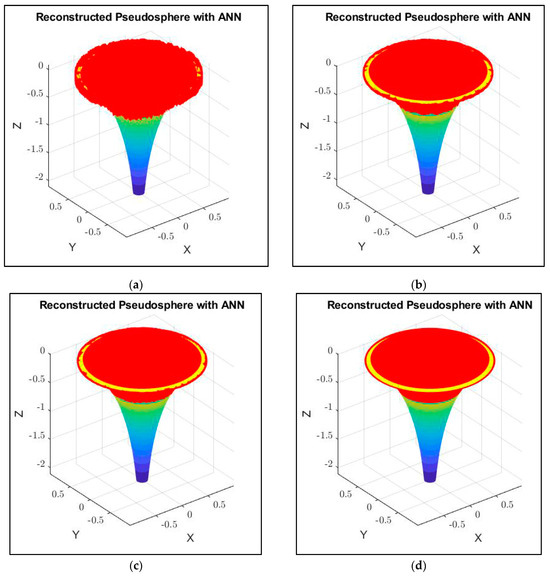 Artificial Neural Networks (ANNs) are applied in various fields, including those related to reconstructing complex geometric surfaces in Euclidean and pseudo-Euclidean spaces [1,2,3,4]. The ability of ANNs to approximate surfaces is used in archaeology for the discovery of ancient artifacts [5,6,7,8], in anthropology and forensic science for reconstructing individual finds [9,10,11,12], and in geographic information systems for approximating the Earth’s surface and terrain, which helps in creating more accurate maps, planning, and managing natural resources [13,14,15,16]. Surface approximation also has applications in the interpretation and analysis of medical images, which is particularly important for accurate diagnosis and surgical planning [17,18]. ANNs that work with geometric surfaces are even used in the development of some types of drug design [19]. The application of ANNs for surface approximation is also relevant in computer graphics [20,21,22,23], geometric modeling [24,25,26,27], automated systems for controlling defective parts with irregular shapes [28], robotics, and autonomous systems [29,30,31,32].