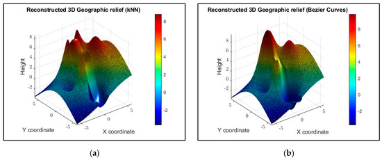 Reconstruction of a geographical terrain, using the following: (a) KNN; (b) Bézier curves.