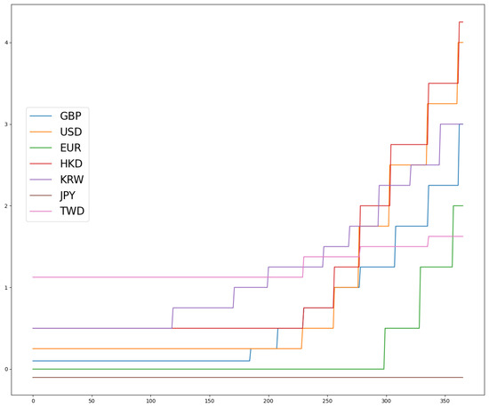 Since the stock trading is not done everyday, we regard 26 September 2022, which is the first observable time point immediately following the intervention, as the first post-intervention time point. Following the no anticipation contextual requirement by Abadie [14], the synthetic control estimators may be biased if forward-looking economic agents react in advance of the policy intervention, while backdating the intervention in the data does not mechanically bias the estimator of the effect. Therefore, we backdate the intervention to 5 September 2022 before Truss became prime minister when little of the anticipation effect can be expected. Additionally, on the one hand, since the stock trading dates are slightly different in various countries, we take the intersection of the trading dates of all the 11 stock indexes to unify the trading dates for them. Then, based on the unified data, we can apply the synthetic control method to estimate the potential outcomes and thus the causal effects. On the other hand, the trading dates are not consecutive, which may lead to some problem while plotting the series, so we transfer the dates into consecutive integers according to the date index (e.g., 20210202 with date index 0 and 20210203 with date index 1, etc.) so that we obtain date consecutive stock index series.