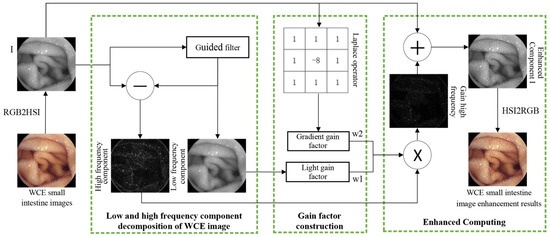 - We have proposed a gain factor construction method, which relies on the light gain function and gradient gain function we construct. The light gain function combines light information to enhance high-frequency components while suppressing noise in darker areas. The gradient gain function enhances the high-frequency components of capsule endoscopy the small intestine villi images based on gradient information. This enhances the fine details of small intestine villi while concurrently mitigating the occurrence of edge overshoot phenomena.